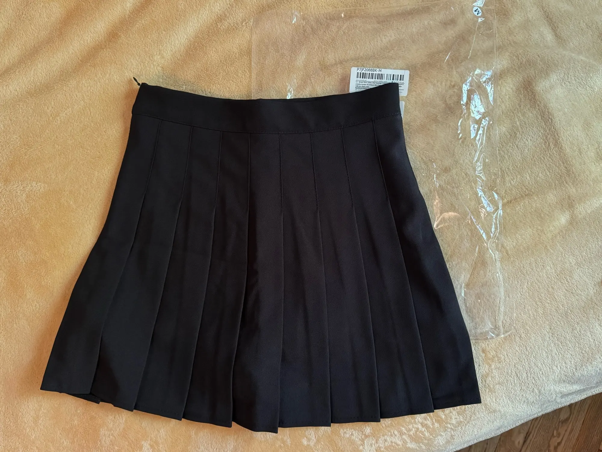 Silhouette: A-line with a pleated design, adding a dynamic texture to the skirt.