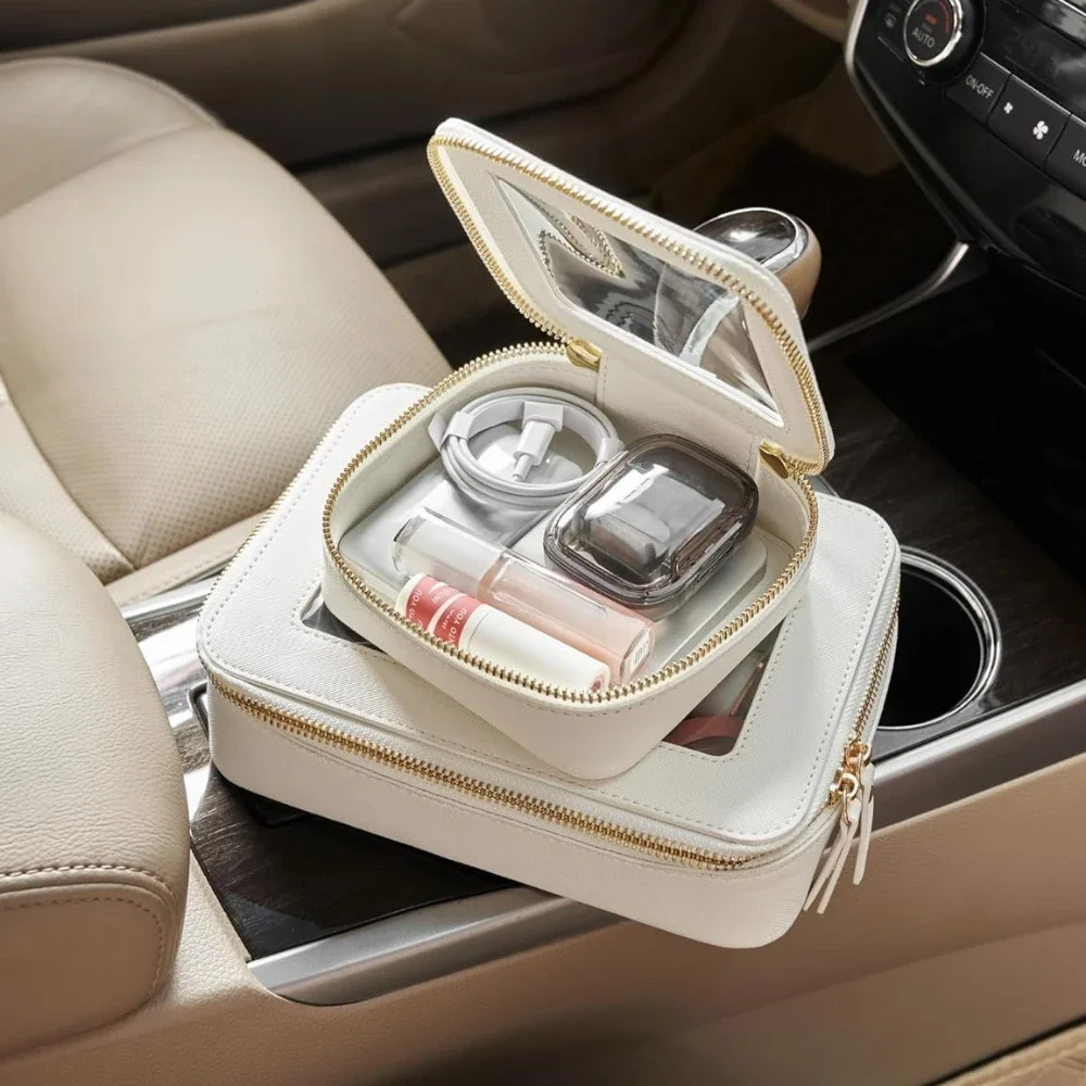 Mini Clear Makeup Bag Pu Saffiano Vegan Faux Leather Cute Small Visible Window Storage Lipsticks Cosmetics Case for Purse Pouch