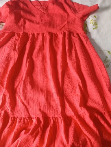 The regular short sleeves and V-neckline are adorned with delicate ruffles, adding a touch of femininity to the design. The A-line silhouette and loose fit ensure a flattering and relaxed shape, making it suitable for various body types.